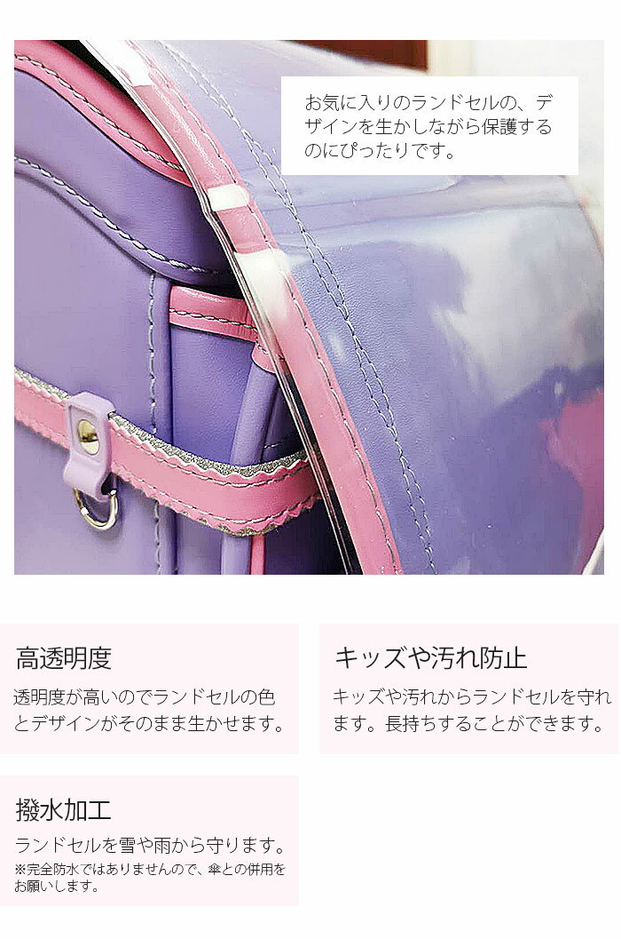 市販のランドセルカバーを付けられる全かぶせタイプ
